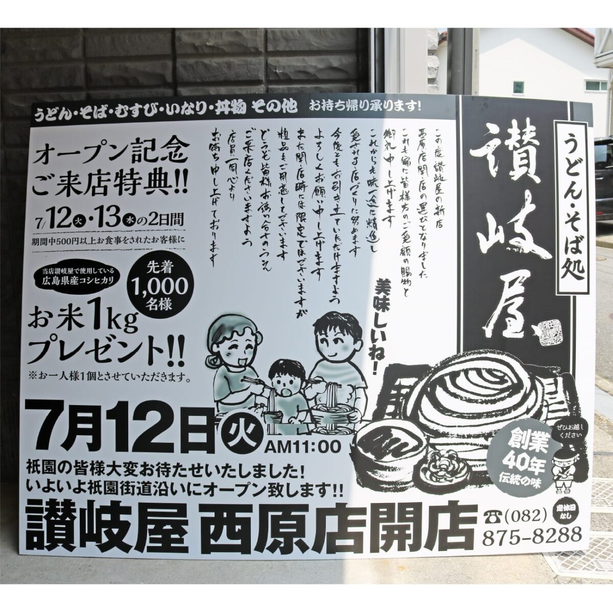 讃岐屋 西原店様 店内OPEN告知用看板の制作をいたしました。