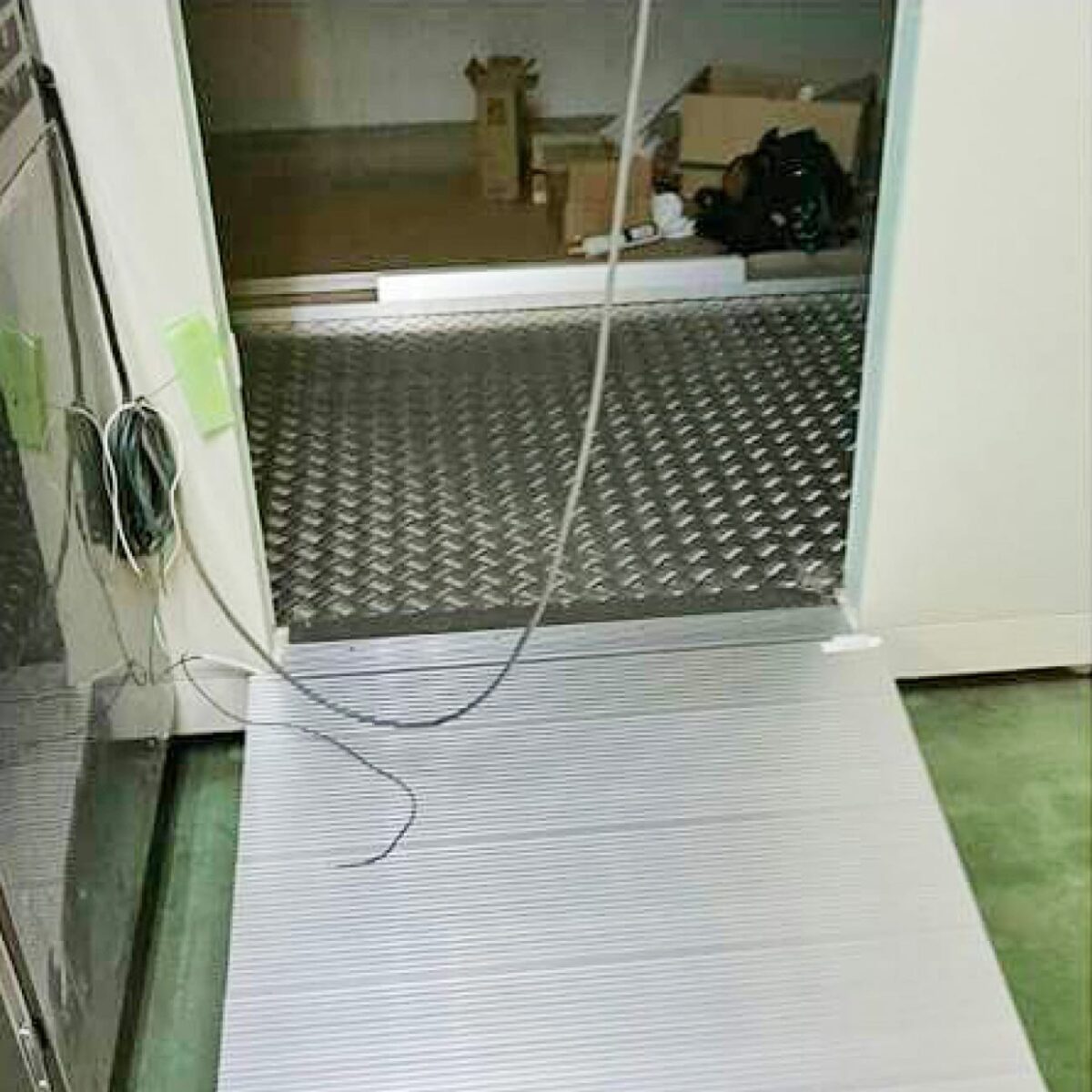 プレハブ冷蔵庫が設置されており、業務内容の変更に伴い冷凍庫に変更。