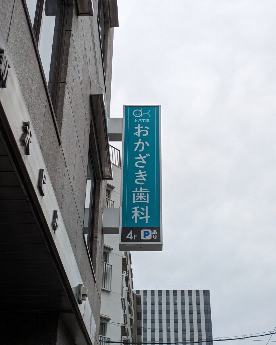 今回は、上八丁堀おかざき歯科医院様の看板の施工を実施させていただきました。