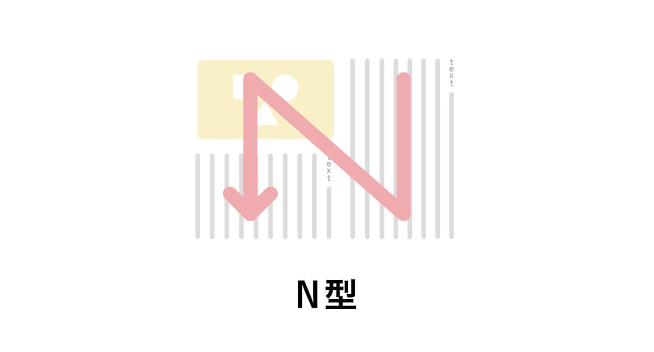 視線の流れが右上→右下→左上→左下の順番で「N」の形に沿って移動します。