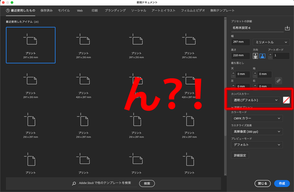 💡新規作成時に一括で背景色(カンバスカラー)の指定ができる