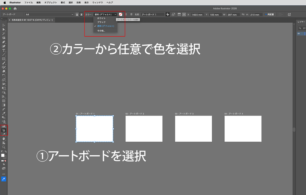 2026年03月イラレのアートボードが背景色(カンバスカラー)を選べるようになっている!